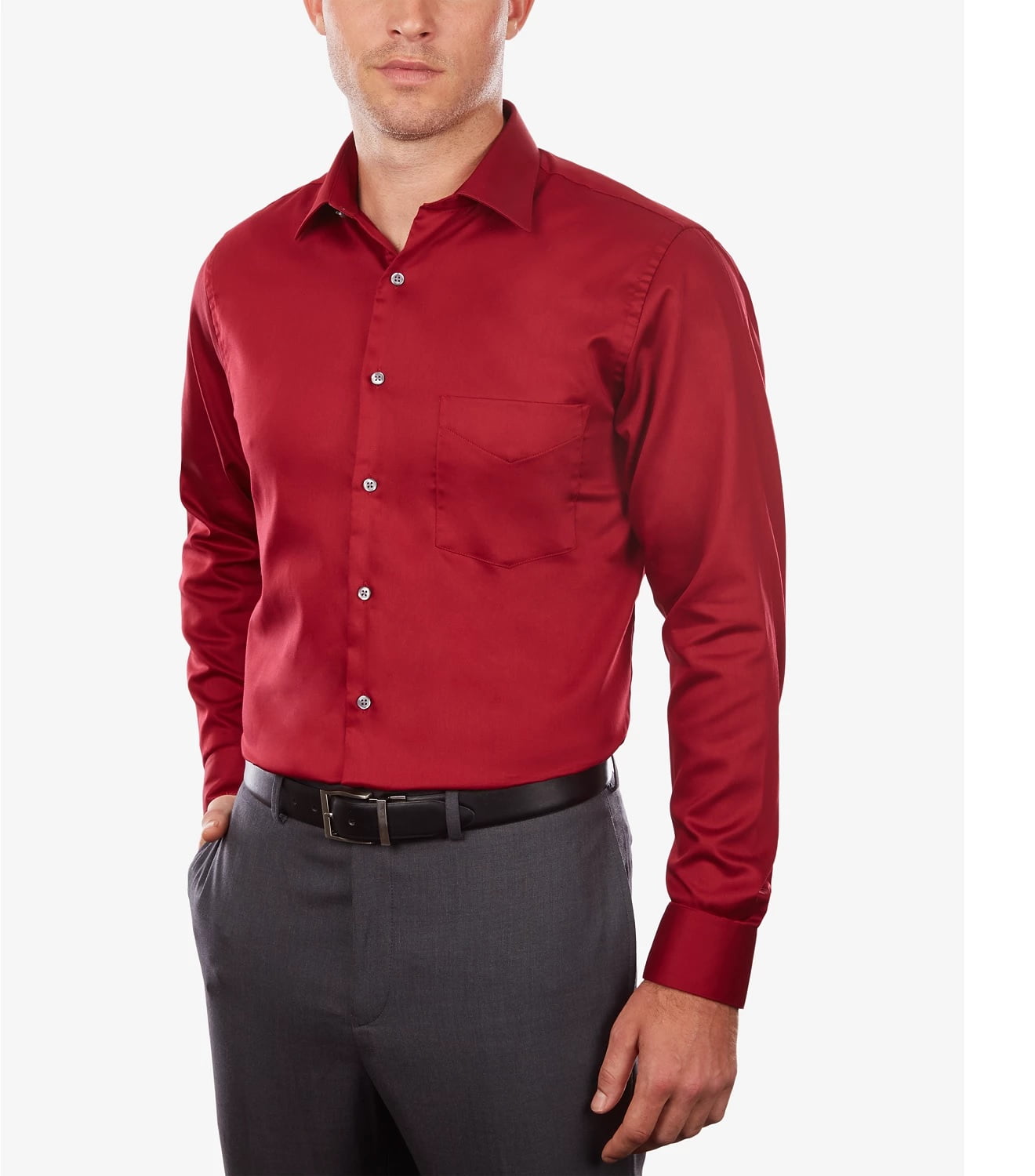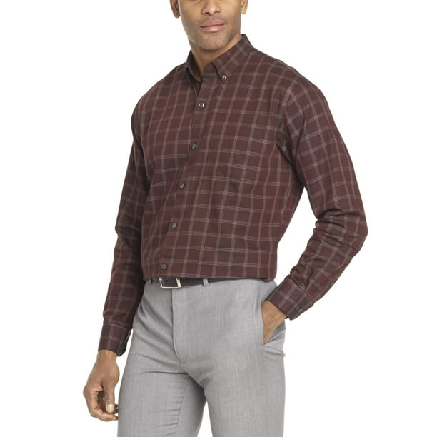 Van Heusen Men S Classic Regular Fit Performance Stretch Wrinkle Free Flex Collar Check Dress Shirt Red Size 15 32 33 Walmart Com